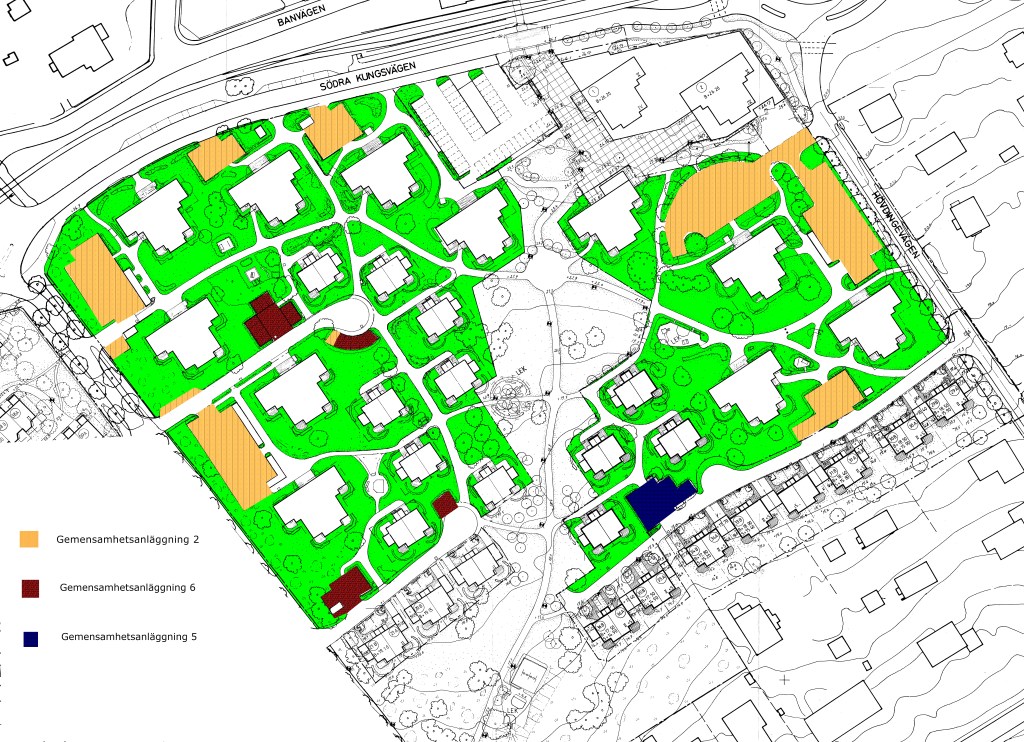 - Grönt – Samfällighetens mark Gemensamhetsanläggning 1 (GA1)